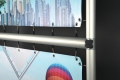 Its a frame which you can display big images at large fields like out frontages, shopping mall autoparks. The prduct is demounted. Aluminium profiles are connecting each other with interlocking L corners. If profiles could be extended, interconnection can be used. Heavy, easy installation product can opportunity to display a few virtual together with T connections. If you have a bird eye on the vinyl, the rubber hooks are enough. If you wish, you can attach a rubber hook or pass a tire cord directly to the latches that hold the poster without drilling the poster.