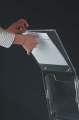 Monoblok; galerilerde, bankalarda ve satış ofislerinde broşürleri sergiyemeye imkan sağlayan bir şık bir üründür. Cep kapasitesi 210x300 mm büyüklüğünde broşürler içindir. Hassas taşıma gerektirir.